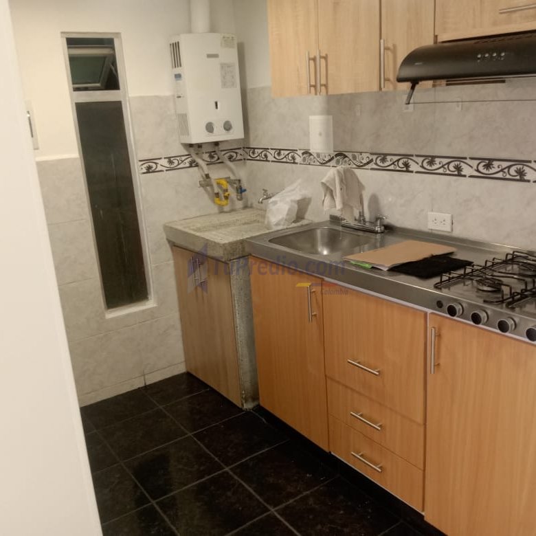 El apartamento cuenta con una sala bien distribuida, cocina integral equipada con calentador a gas y zona de lavado independiente.