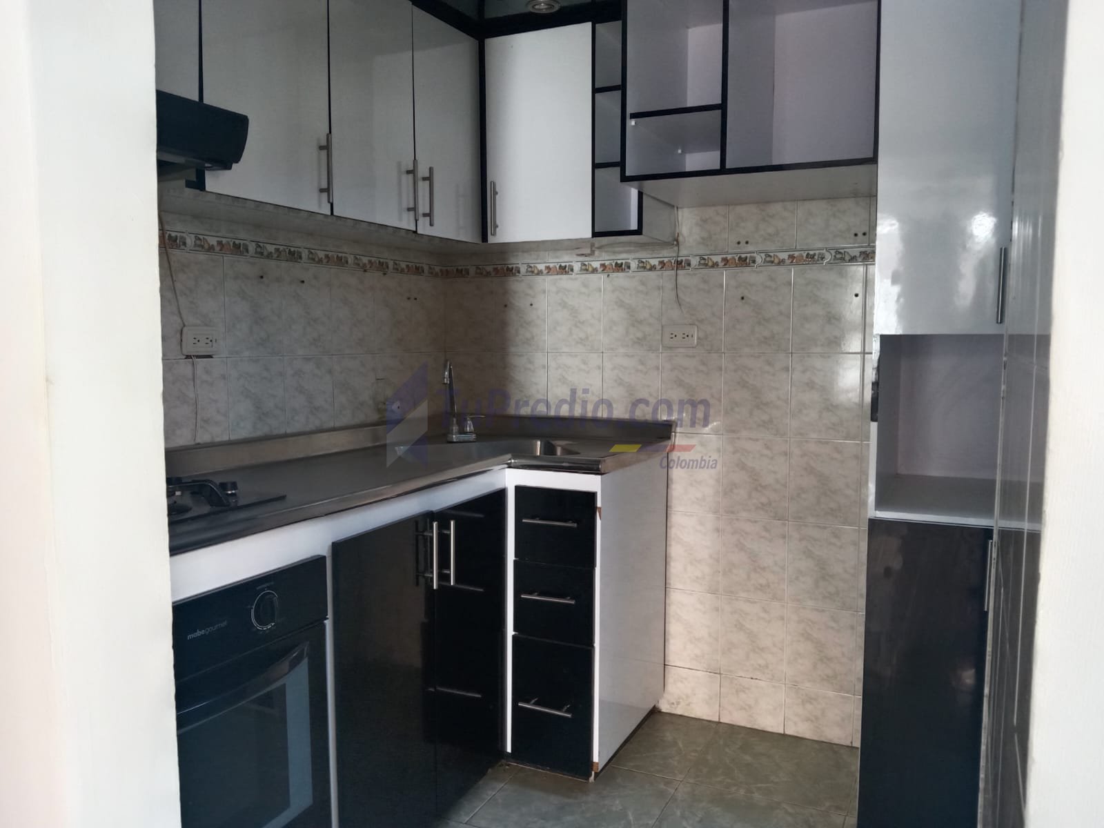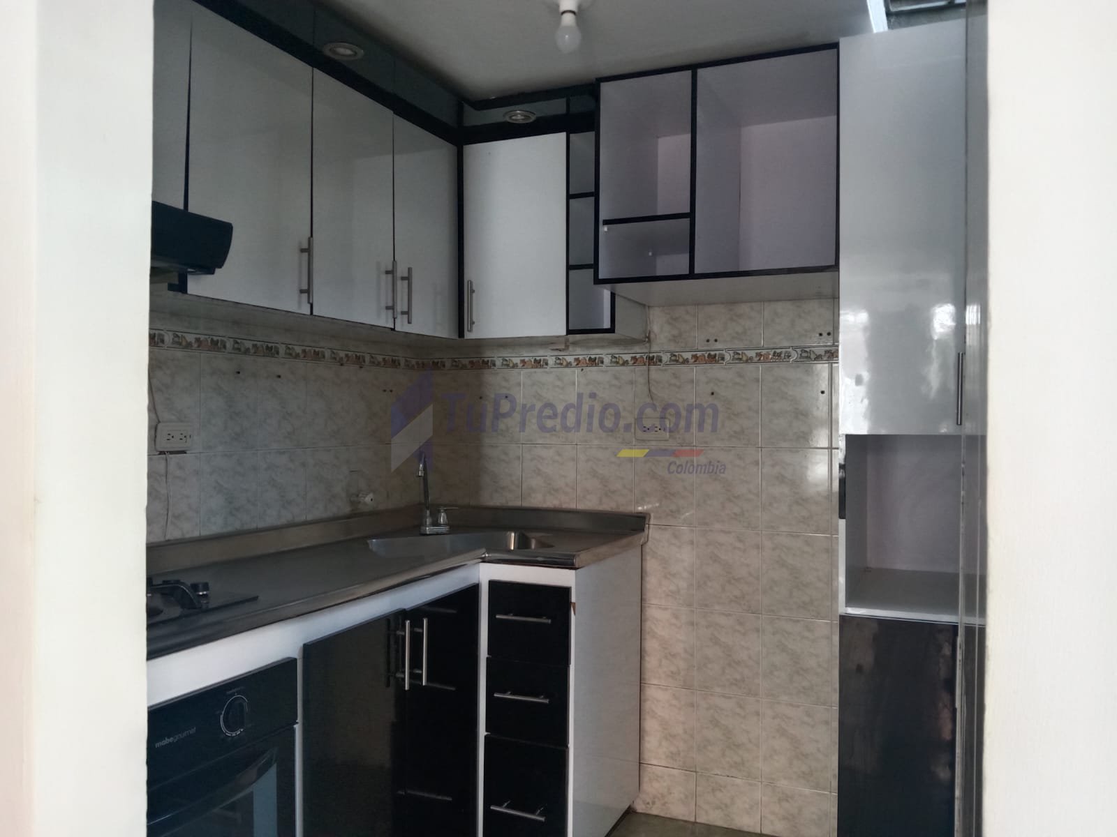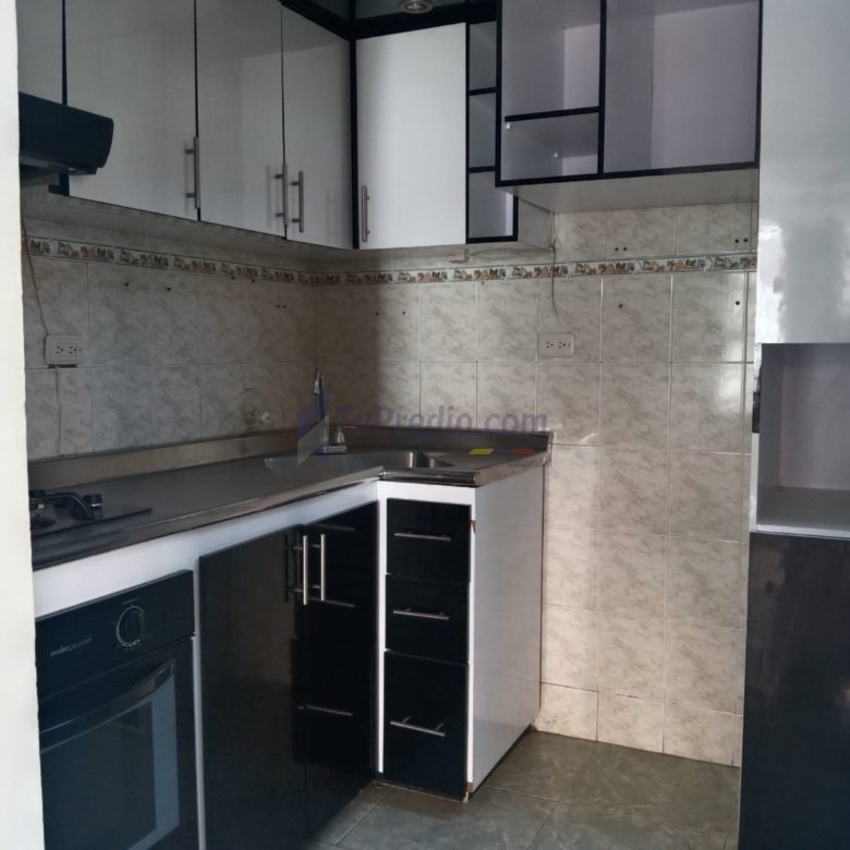 Semi integral: Cocina equipada parcialmente con muebles y mesón básico.